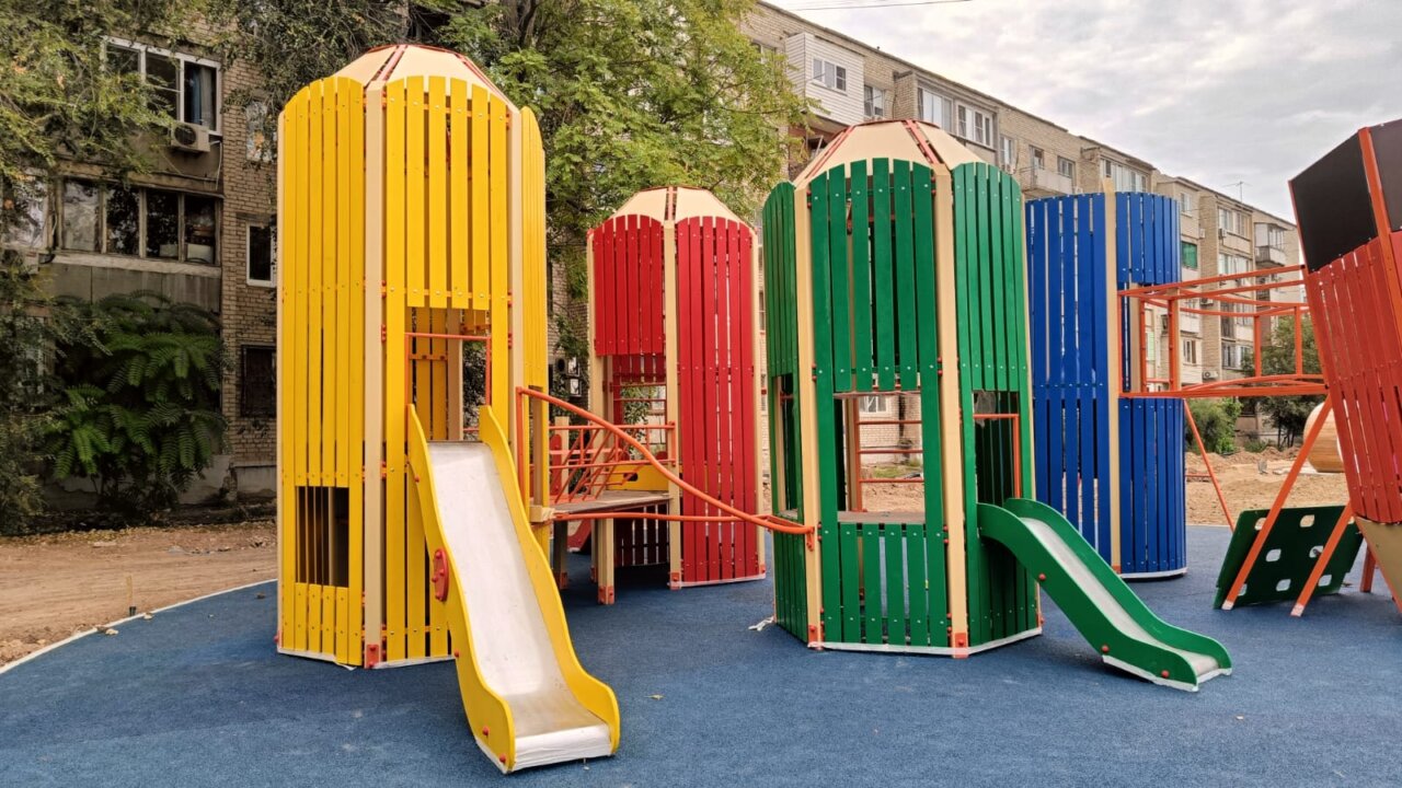 Рабочим подрядной организации осталось совсем немного до финиша. Уже убраны под землю многочисленные провода, которые раньше свисали и портили внешний вид территории, а также на 90% выполнена укладка плитки на пешеходных дорожках — они будут с мерцающим эффектом. На 80% закончены работы по созданию фонтана. Сейчас идет установка различных малых архитектурных форм: качелей, лавочек с навесами и подсветкой и детского игрового комплекса в виде карандашей.
