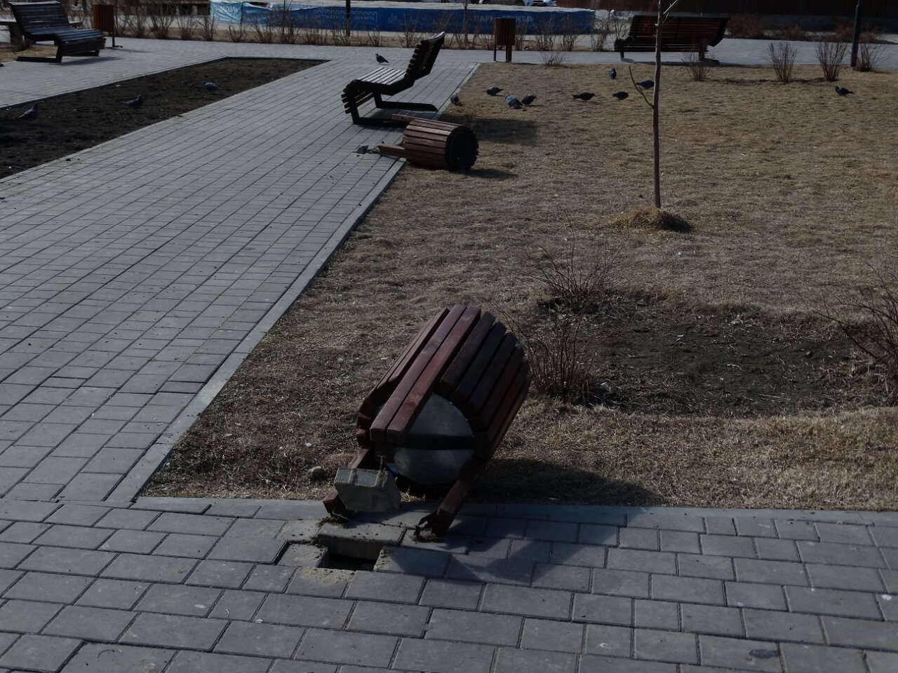 Как ни странно, остальные составляющие парка — лавочки, детские площадки, фонари и деревья — остаются нетронутыми. Остается только гадать, чем не угодили вандалам именно мусорные контейнеры, и как долго будут продолжаться эти массовые «расправы».
