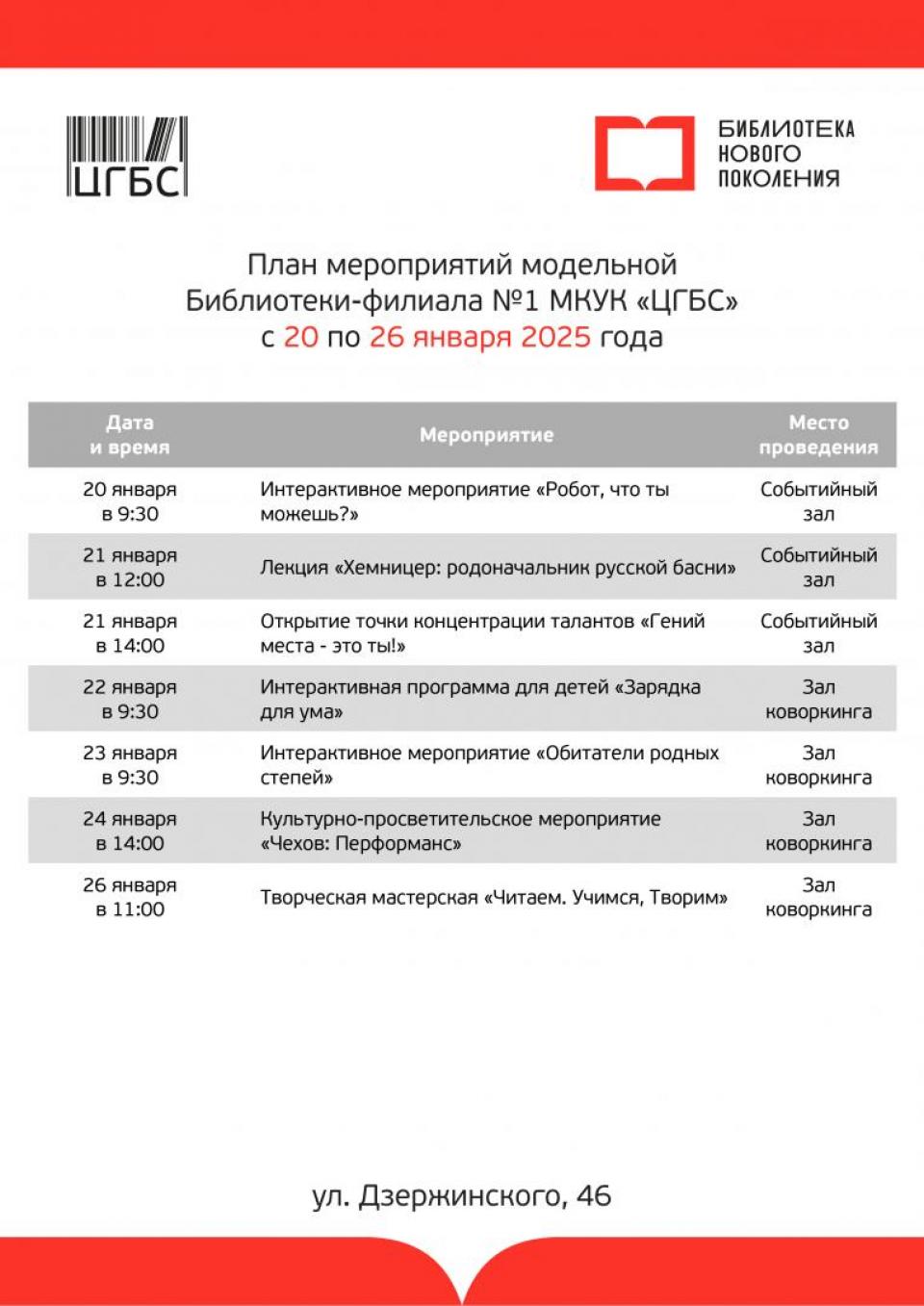 Также на этой неделе в модельной библиотеке пройдет лекция о роли астрономии, литературная встреча, главной темой которой будет творчество А.П. Чехова, и ряд мероприятий, посвященных событиям Великой Отечественной войны 1941-1945 гг., в том числе блокаде Ленинграда. Насыщенной программа будет и в модельной библиотеке на ул. Дзержинского, 46. О том, какие еще мероприятия планируется организовать на этой неделе в данных учреждениях, рассказано в карточках.