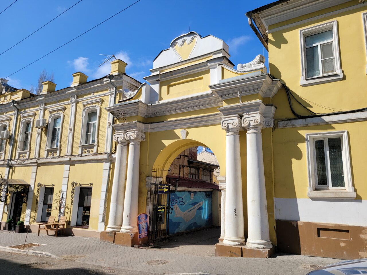 Неравнодушные астраханцы решили вернуть исторический облик одному из старейших зданий центра Астрахани — усадьбе Федорова, расположенной на перекрестке улиц Кирова и Чернышевского. А точнее — арке на входе в ее двор. Сейчас эта арка известна двумя любопытными узнаваемыми скульптурами львов. Но на ней не хватает одной детали. Обратите внимание на этот штырь посередине.