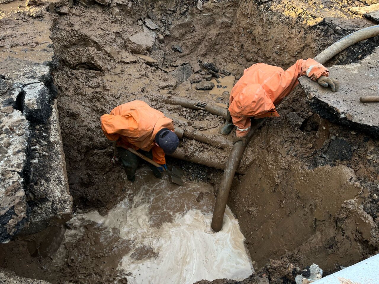 Бригада намерена работать до полного устранения аварии, но пока ситуацию затрудняет обширность течи.