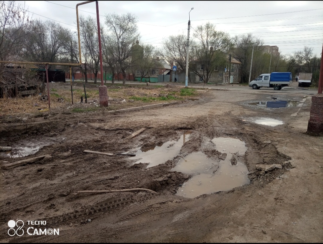 Один из самых разбитых участков — начало переулка, со стороны улицы Дзержинского. Дело в том, что там проводились коммунальные работы, дорогу пришлось раскапывать. После устранения аварии яму засыпали, но земля «уселась» и образовался провал. Об этом рассказал астраханский врач скорой помощи и по совместительству общественник Наиль Адельшинов.