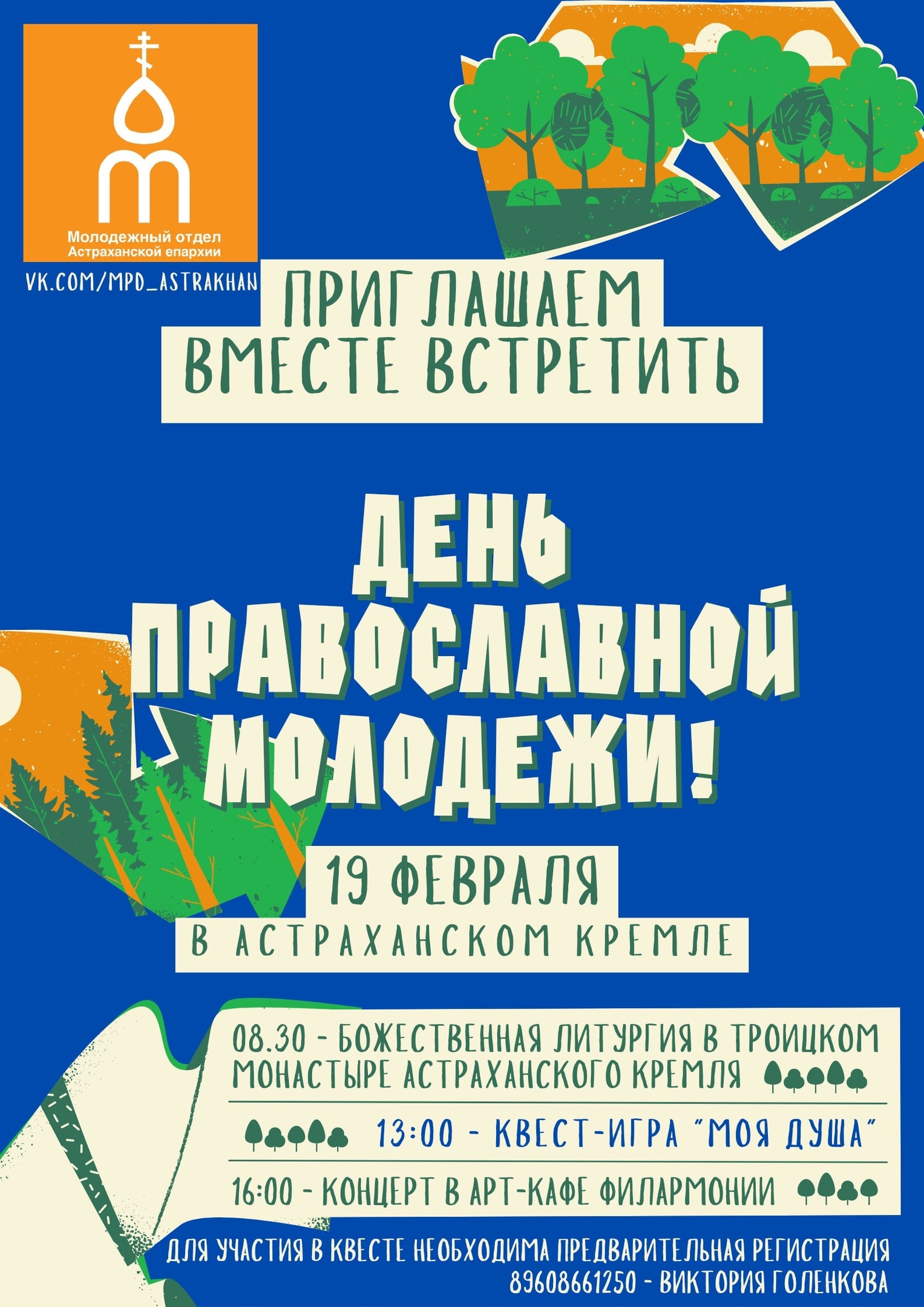 По всем вопросам обращаться к организаторам мероприятия - сотрудникам Молодежного отдела Астраханской епархии . Звонить или писать по телефону 89608661250 - Виктория Голенкова.