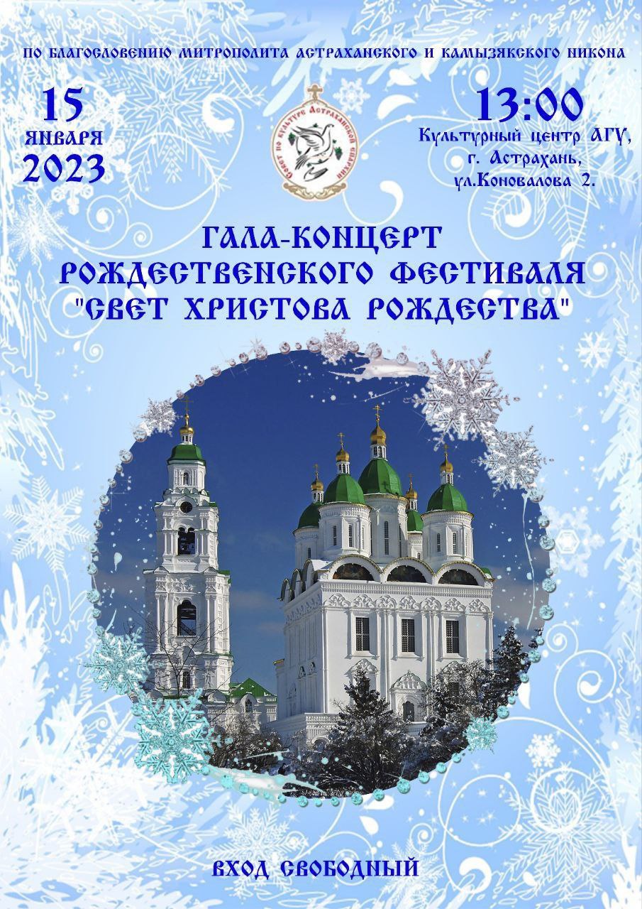 Приглашаем на гала-концерт Рождественского фестиваля «Свет Христова Рождества», организованного Советом по культуре Астраханской епархии совместно с Астраханским региональным отделением Международного общественного Фонда единства православных народов.