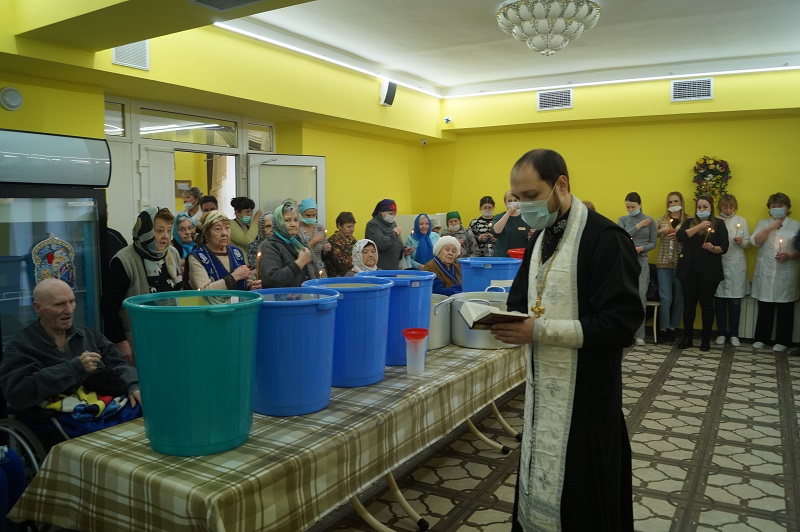 Этот праздник не прошел мимо проживающих ГАСУ АО «Астраханский дом-интернат». Священослужители Успенского кафедрального собора провели вядосвятный молебен, на котором присутствовали все желающие как из числа проживающих, так и сотрудники. А тем кто не смог прийти на молебен, освященную воду принесли прямо в комнату.