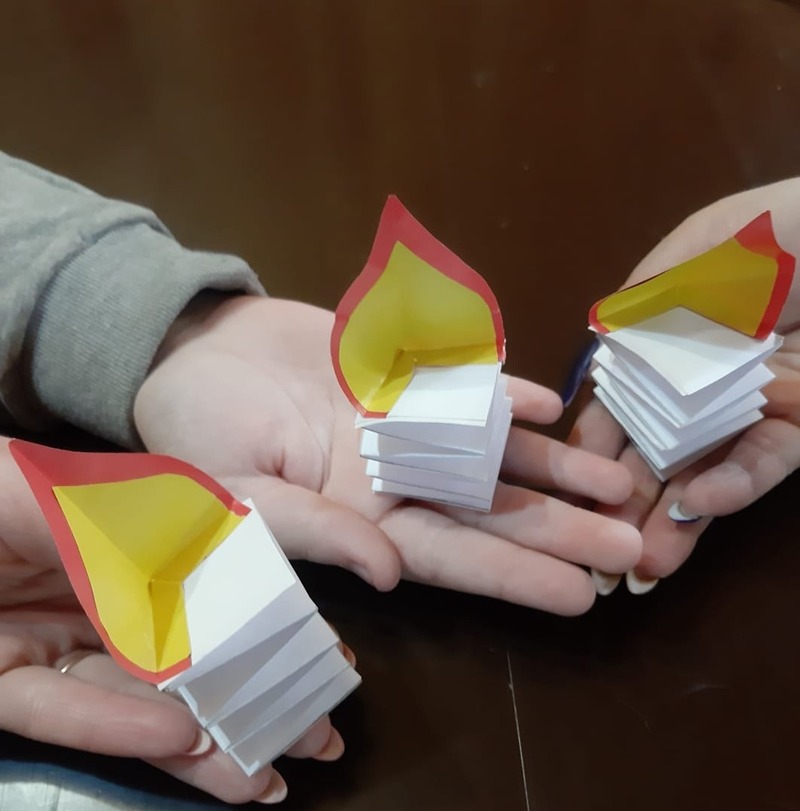 Мастерицы Ремесленного подворья подготовили и провели мастер-класс по изготовлению бумажных праздничных свечей. Участниками творческой встречи стали ребята села Евпраксино.