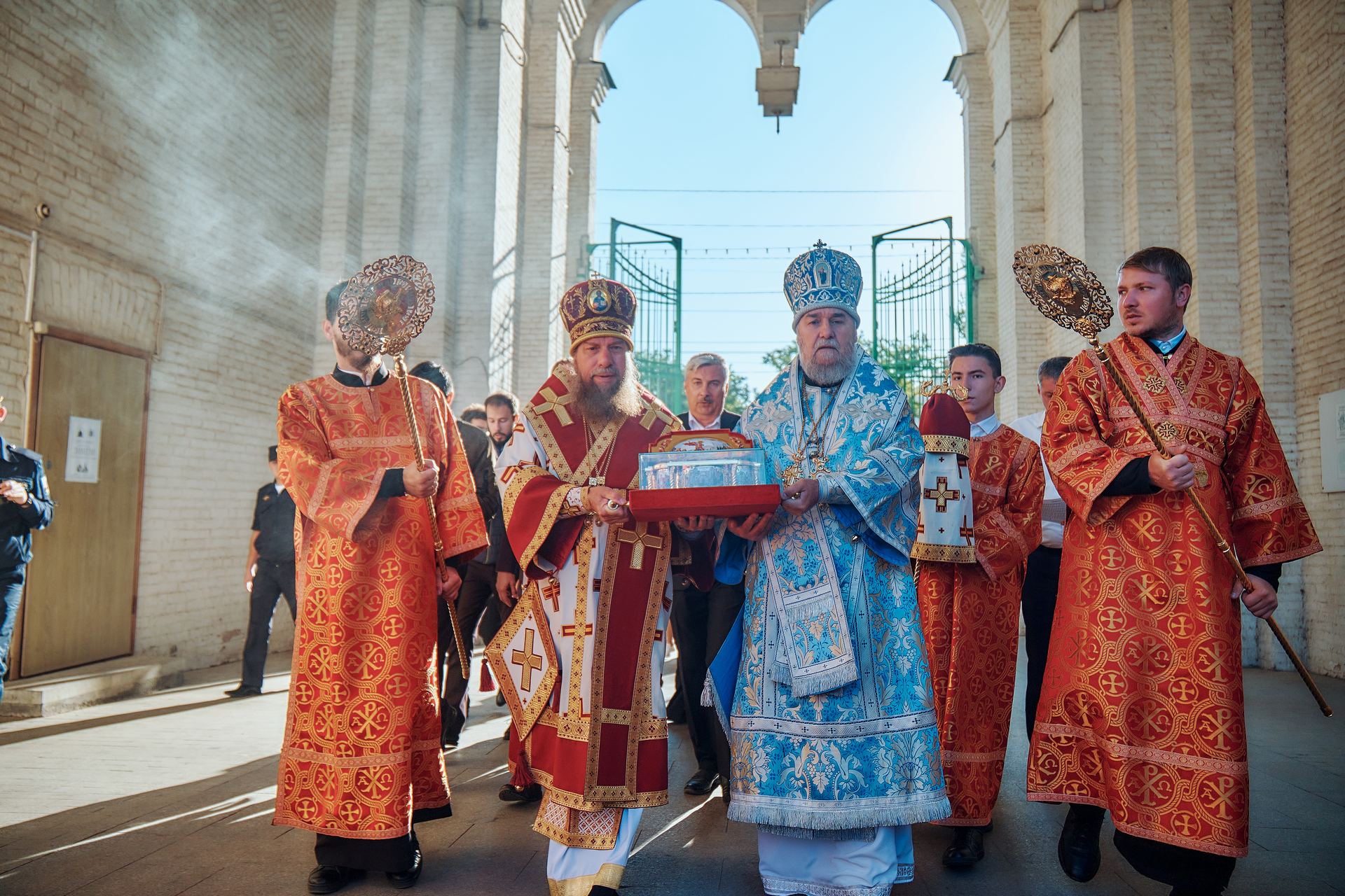 После торжественной встречи святыни у ворот Астраханского кремля митрополит Астраханский и Камызякский Никон и епископ Ахтубинский и Енотаевский Всеволод совершили Божественную литургию в соборе. Архипастырями сослужили клирики Астраханской епархии. За богослужением пел архиерейский хор.
