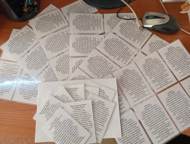 Помещение волонтёрам предоставил храм Рудненской иконы Божьей матери. Сшитые тактические носилки будут отправляться в зону проведения СВО и помогут спасти жизни. Но солдатам нужна и духовная, моральная поддержка, и настоятель храма передал редакции «Приволжской газеты» тексты молитв для солдат. В редакции распечатают и заламинируют листы с молитвами, они будут освящены в храме. Эти молитвы будут передаваться бойцам вместе с тактическими носилками, сшитыми волонтерами.