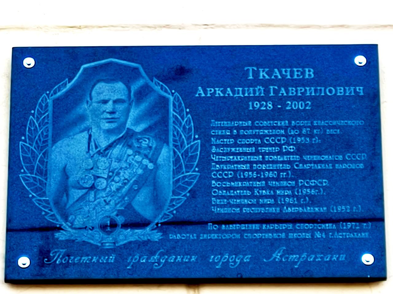 Накануне в Каспийской столице прошло знаменательное событие для всего астраханского спорта. На здании, расположенном на улице Адмиралтейская, 6, открыли памятную мемориальную доску знаменитому астраханскому борцу, Почетному гражданину Астрахани, заслуженному мастеру спорта Российской Федерации, заслуженному тренеру России Аркадию Гавриловичу Ткачеву. Про успехи Аркадия Ткачева можно говорить бесконечно. Он четырежды был чемпионом СССР в полутяжелом весе (до 87 кг), являлся вице-чемпионом мира, обладателем Кубка мира, двукратным серебряным призером первенства Советского Союза, двукратным победителем Спартакиады народов СССР, восьмикратным чемпионом РСФСР. 3 июня ему исполнилось бы 95 лет. После окончания спортивной карьеры Аркадий Гаврилович много лет возглавлял сборную Астраханской области по классической борьбе. Он много сил отдавал тренерской деятельности, в 1971 году возглавил созданную им самим в Трусовском районе детско-юношескую спортшколу №4, которая будет теперь носить его имя. В данной школе воспитали большое количество спортсменов, которые успешно представляют наш регион на российской и международной аренах. Открытие мемориальной доски на доме, где жил прославленный спортсмен, стало возможным благодаря усилиям Совета ветеранов при министерстве спорта и физической культуры Астраханской области, поддержке Администрации города Астрахани. На торжественное мероприятие пришли многие ветераны астраханского спорта, родственники Аркадия Ткачева, депутаты областной и городской Думы, бывшие ученики спортсмена. Глава города Олег Полумордвинов в своем выступлении отметил, что на астраханской земле выросло много знаменитых спортсменов, которые принесли славу региону на советских, российских и международных соревнованиях. Жители Каспийской столицы всегда будут помнить и чтить память этих людей. Много теплых слов об Аркадии Ткачеве сказали заместитель председателя областной Думы Виталий Гутман, замминистра спорта и физической культуры Астраханской области Александр Голобоков, председатель Совета ветеранов при облминспорте Юрий Лайков, президент Олимпийского совета Астраханской области Валентин Макаров, заслуженный тренер Российской Федерации Юрий Шоя, олимпийский чемпион Андрей Тюменцев, дочь Аркадия Ткачева Татьяна Королькова. А право открыть мемориальную доску было предоставлено Олегу Полумордвинову и сыну Аркадия Ткачева — Игорю Ткачеву.