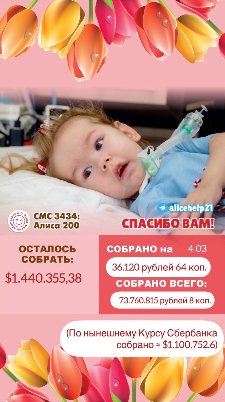 С начала года в России стартовал проект расширенного неонатального скрининга по выявлению наследственных заболеваний. Так, у шести детей подтвердили синдром спинальной мышечной атрофии, у 12 диагностировали первичный иммунодефицит, у 20 — наследственные болезни обмена веществ. Детей с наследственными заболеваниями поддерживает фонд «Круг добра» и обеспечивает их лечением. Более 5 тысяч детей обеспечены инновационными лекарствами и медицинскими изделиями. В год на обеспечение одного ребенка выделяется около 15 млн рублей. Напомним, что в Астраханской области также проживает маленькая девочка Алиса Кочеткова, которая полтора года упорно борется со СМА. Наша землячка пережила за свою жизнь коронавирус, две остановки сердца. От фонда «Круг добра» она получает только уколы препарата «Спинраза». Лекарство приостанавливает развитие симптомов, а не лечит само заболевание. Для выздоровления Алисе требуется препарат «Золгенсма», который стоит более 160 млн рублей. На данный момент родители собрали только 73 млн рублей. Но сбор продолжается и дальше. Реквизиты для помощи Алисе Кочетковой (Сбербанк MasterCard) +7(965) 453-95-50; 5336 6901 9608 6104 (Алена Флейм).