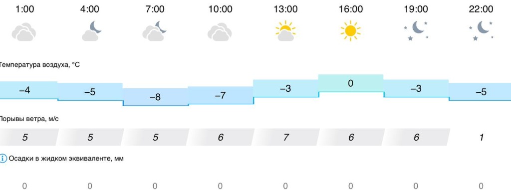 С утра столбик термометра покажет 8 градусов мороза, днём воздух прогреется до 0, а вечером температура опустится до -5.