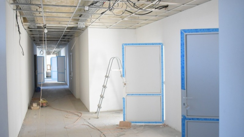 Строительные работы проходят на площади более 800 квадратных метров. Специалисты уже заменили оконные блоки, провели перепланировку существующих помещений, вставили межкомнатные двери, обновили напольное покрытие, системы водоотведения и водоснабжения. На данный момент проводятся штукатурные и отделочные работы, монтаж подвесного потолка и электрических сетей.