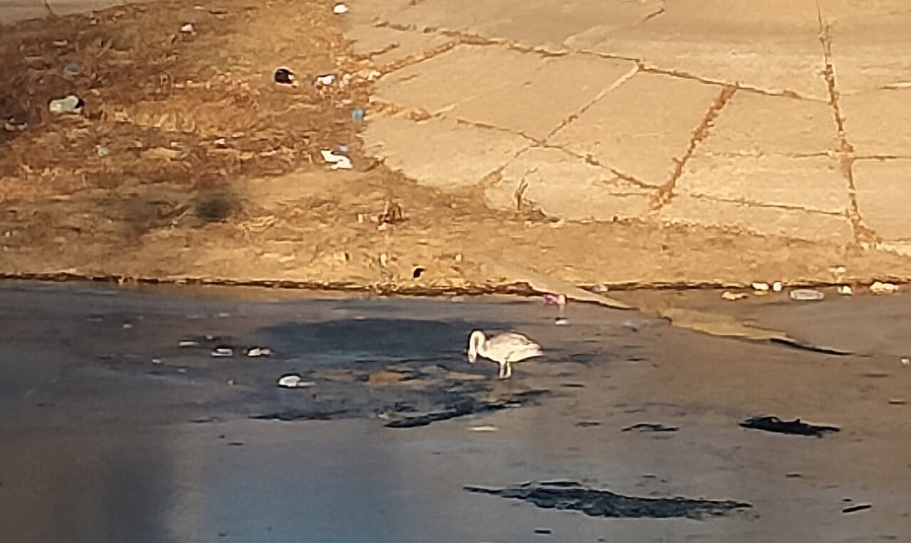 Еще в пятницу астраханцы заметили на стрелке Кутума и Волги рядом с Дворцом бракосочетаний одинокую серую птицу.