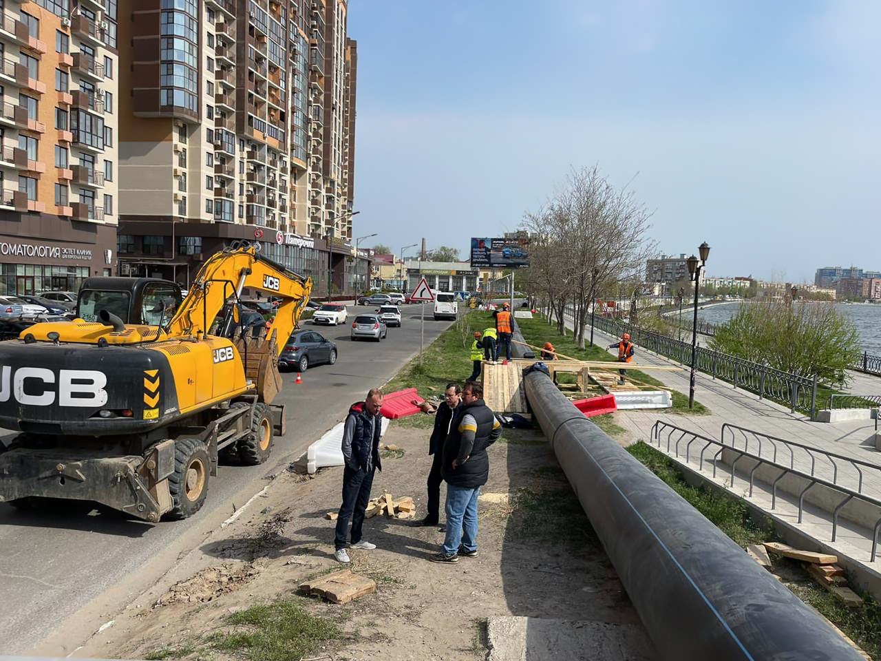 Глава Астрахани Олег Полумордвинов побывал на трех участках, где сейчас идет ремонт. Это улица Куйбышева (там меняют 310 метров канализационной трубы и обустраивают 14 новых колодцев), Набережная Приволжского Затона (там меняют 810 метров крупной канализационной трубы) и дюкерный переход водопровода под Царевом возле Милицейского моста (одна труба диаметром 630 мм уже проложена, идет подготовка к укладке второй — диаметром 315 мм). Работы на всех планируют завершить уже этим летом, подчеркнул Олег Полумордвинов.