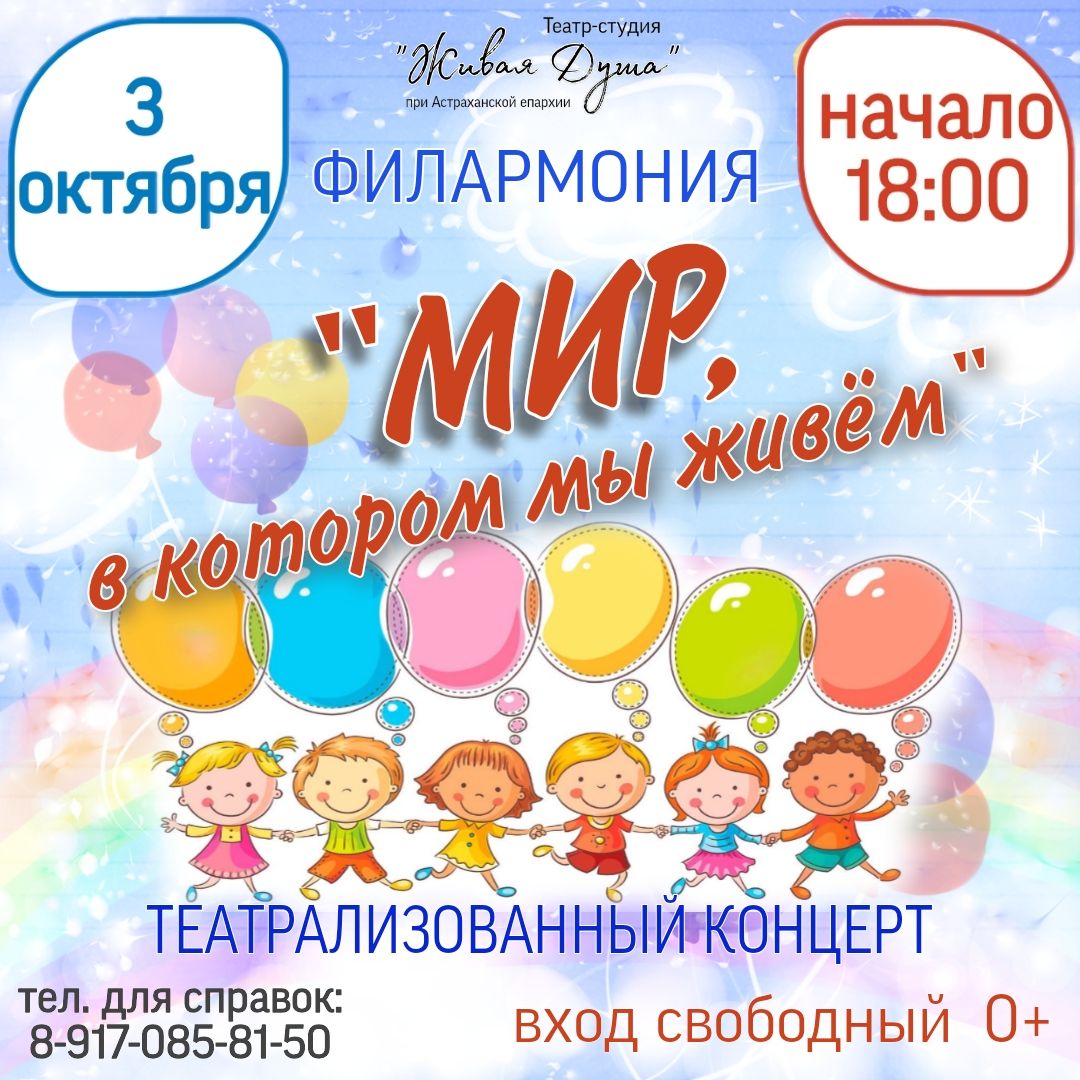 Начало во вторник, 3 октября в 18 часов в Астраханской государственной филармонии (улица Молодой Гвардии, 3). Вход свободный. Подробности на страницах Театра-студии «Живая Душа» во «ВКонтакте» и Telegram .