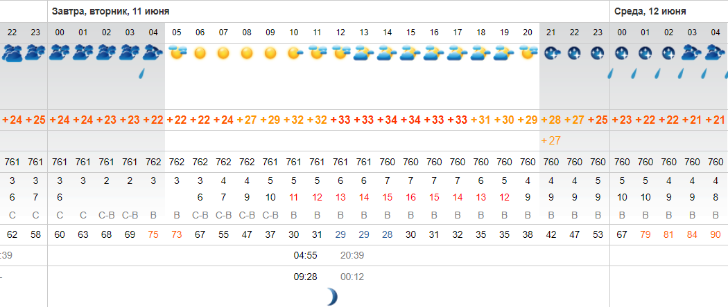 В астраханской области продолжается небольшое "похолодание": днем нет такой испепеляющей жары, которая мучила местных жителей на прошлой неделе. Эта тенденция сохранится и в ближайшие дни. Завтра в Астрахани дневная температура воздуха составит +29..+34 градуса, ночью опустится до +21 градуса. Утром будет ясно, но затем небо затянет тучами. В областном центре возможны небольшие осадки в ночное время, кратковременный дождь прогнозируют также в ряде других муниципалитетов - например, в Знаменске, Ахтубинском и Харабалинском районах. Порывы восточного ветра будут достигать 16 м/с. Атмосферное давление составит 760 мм рт. ст. Влажность воздуха в темное время суток повысится. Луна растущая. 11 июня верующие чтят память преподобной девы Феодосии Константинопольской, в народном месяцеслове - день Феодосии Колосятницы. По приметам, какая погода в это время - такое и лето будет. Дождь предвещал осадки в оставшиеся летние месяцы.
