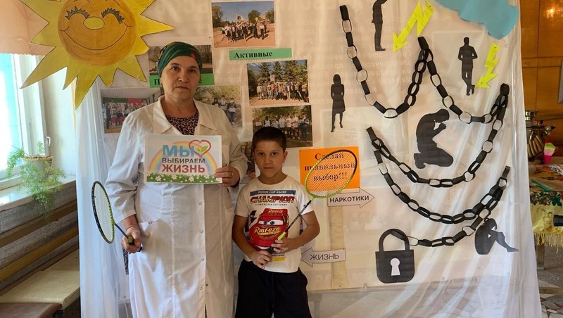 Фельдшер ФАП Гулжанат Аммаева рассказала ребятам о том, какое негативное влияние на здоровье человека оказывают вредные привычки. В ходе часа дети активно участвовали в викторинах и конкурсах на антинаркотическую тему. Для участников мероприятия была подготовлена фотозона «Сделай правильный выбор».